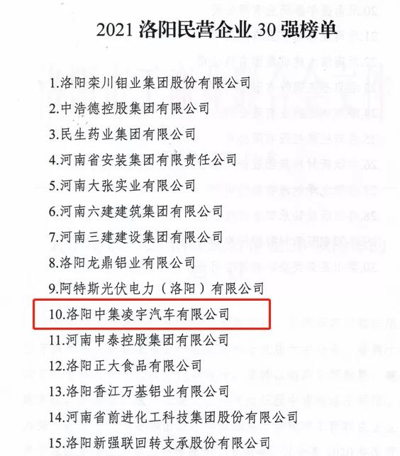 同期,由洛陽市工商聯(lián)主辦的“洛陽民營企業(yè)30強(qiáng)”發(fā)布會(huì)上,中集凌宇憑借穩(wěn)健的發(fā)展實(shí)力,位列“2021洛陽民營企業(yè)30強(qiáng)”第十位。