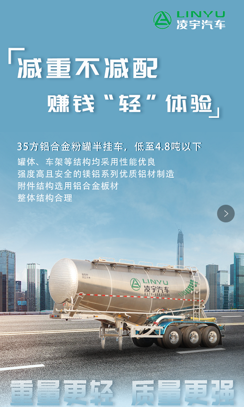 凌宇汽車提前布局,在研發(fā)團隊精挑細選后,選用質(zhì)量更輕強度更大的鋁鎂合金作為材料進行破局,并于2018年推出鋁合金粉粒物料運輸半掛。經(jīng)過兩年的不斷優(yōu)化升級,尺寸、自重、結(jié)構(gòu)、性能等方面均得到了全面提升,成為市場“安全省心、多拉快跑”的代表。