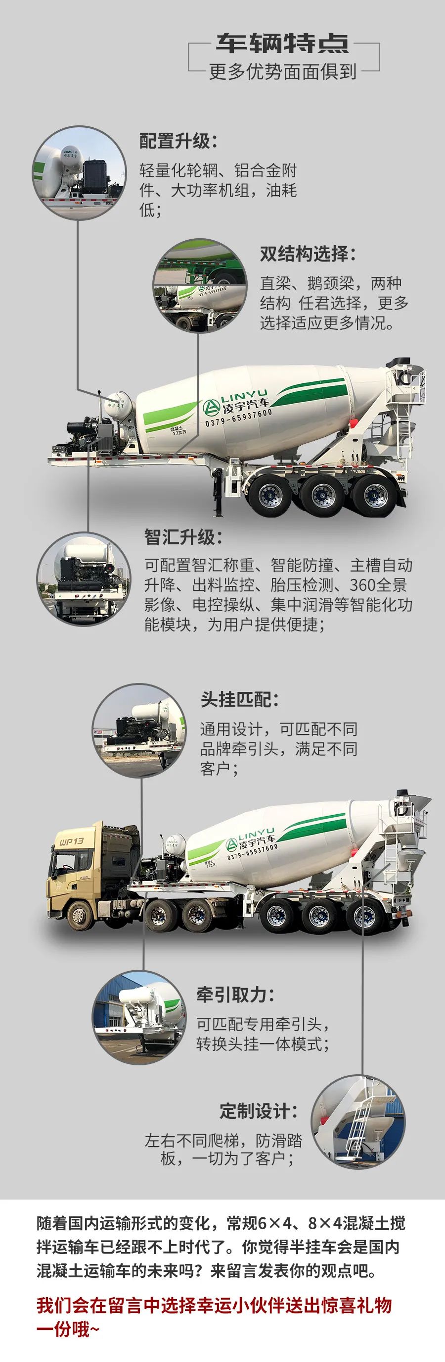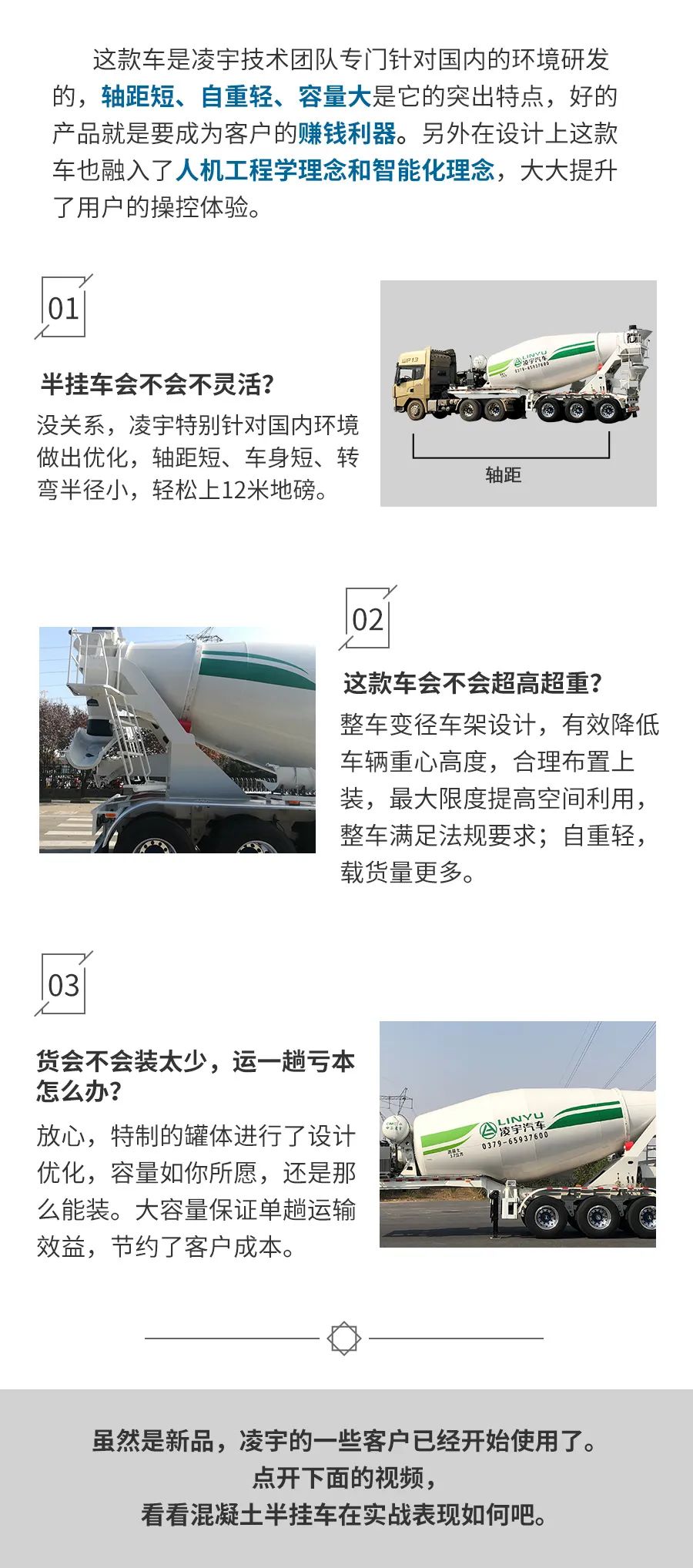 到了2019年,隨著政策的變化,混凝土攪拌運輸半掛車需求信息從各地傳來,身為“罐車專家”的中集凌宇果斷再次對該產(chǎn)品升級。2019年年底,版CLY9400GJB混凝土攪拌運輸半掛車正式登臺亮相。