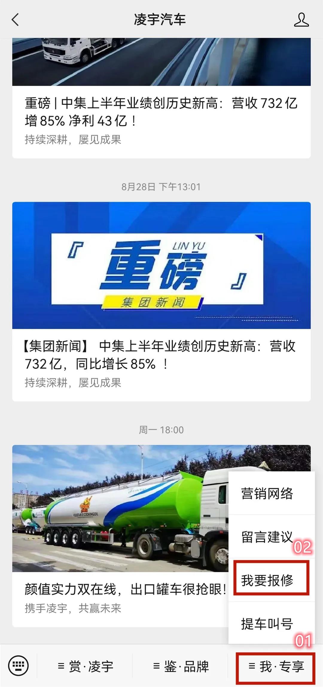 1.在凌宇汽車微信公眾號(hào)后臺(tái),點(diǎn)擊“我?專享”